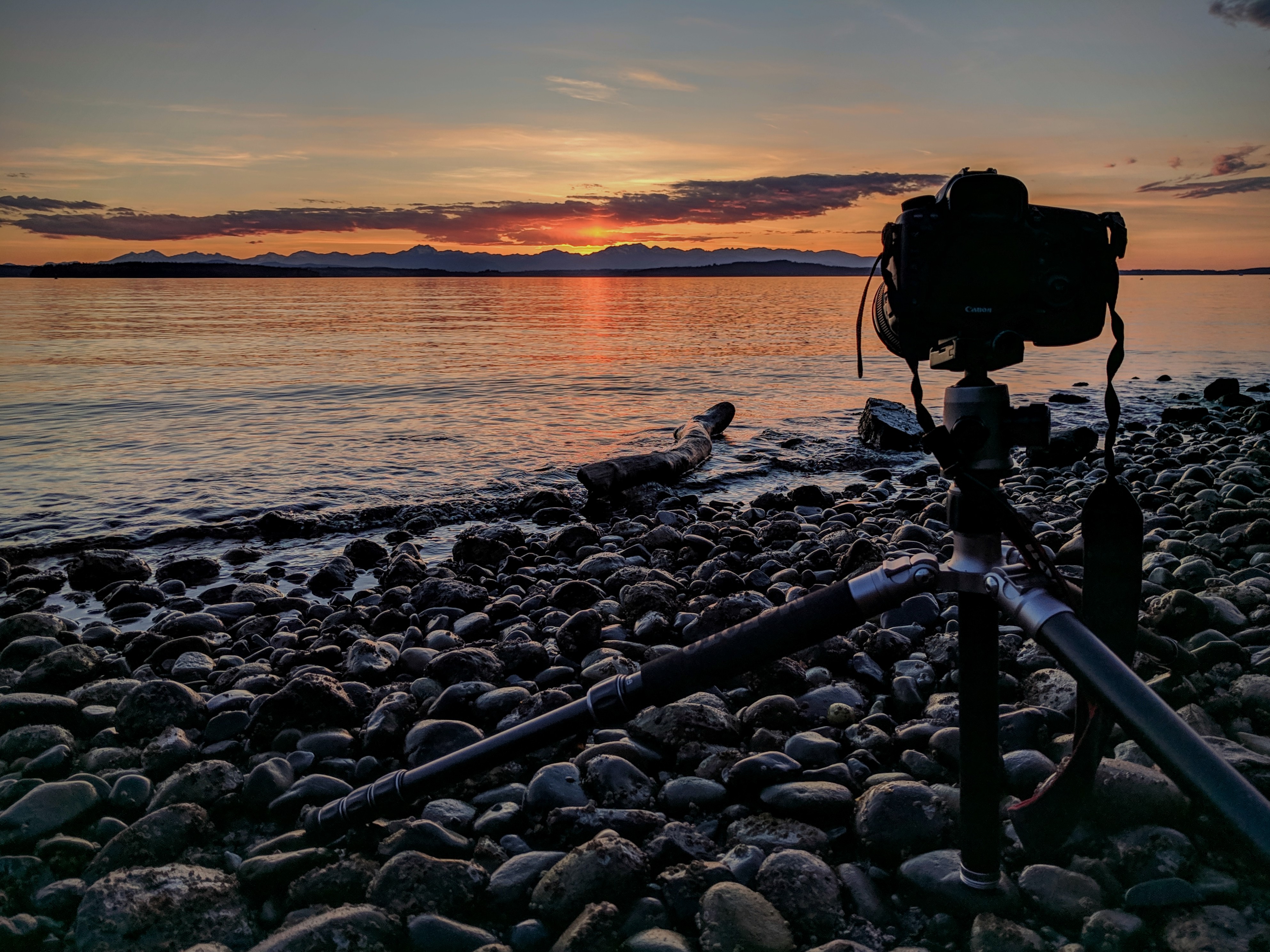 Now for the “how to.” Well, you need a tripod to get the smooth look on the water because the shutter is open for about 1 second. Without a tripod these shots would be all blurry. They would not be what the pros call “tack sharp!” Having the camera solidly stationary while there is movement in front of the lens gives a silky look to the water as it blurs a little from the movement of the waves as the camera lens aperture is open for a little while. This shows up on only one of these 3 photos. Can you see it? It’s second nature for landscape photographers and it’s called the silk effect. Leaving the aperture open for a little bit as something is moving in the frame creates a beautiful dynamic. One can do this with moving waves, mountain streams, waterfalls, anything that moves. So this is also done with star photography and movement in the sky is a fascinating thing to capture. Except the lens needs to be open for a longer time. One last tip. It’s helpful to have something in the picture, alongside the movement in the frame, that is stationary. In this shot I picked a small log/branch that I placed in the surf. The rocks also served this purpose.